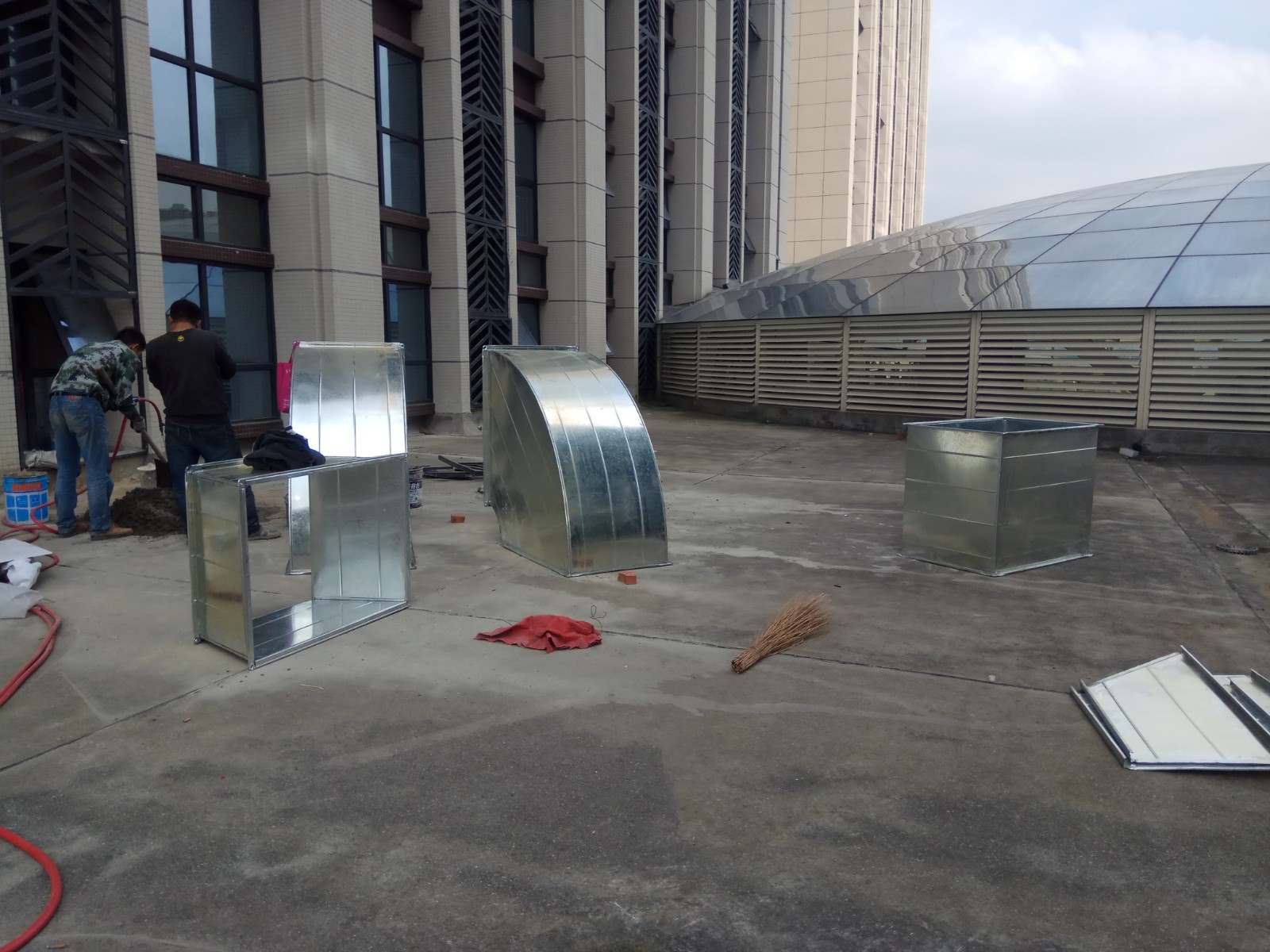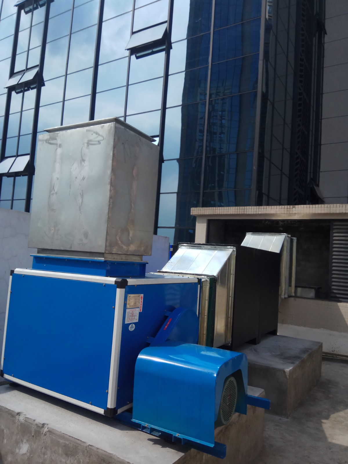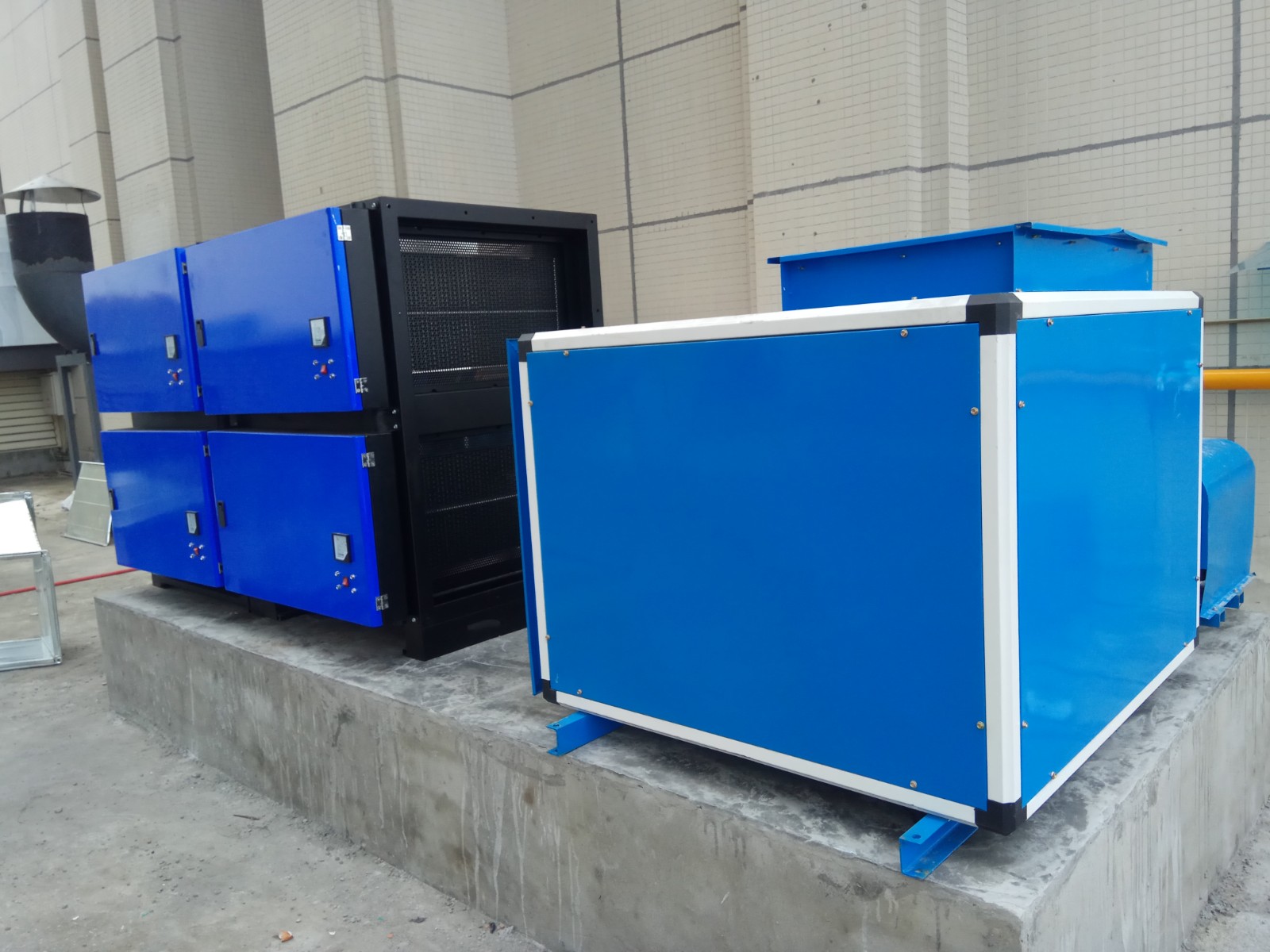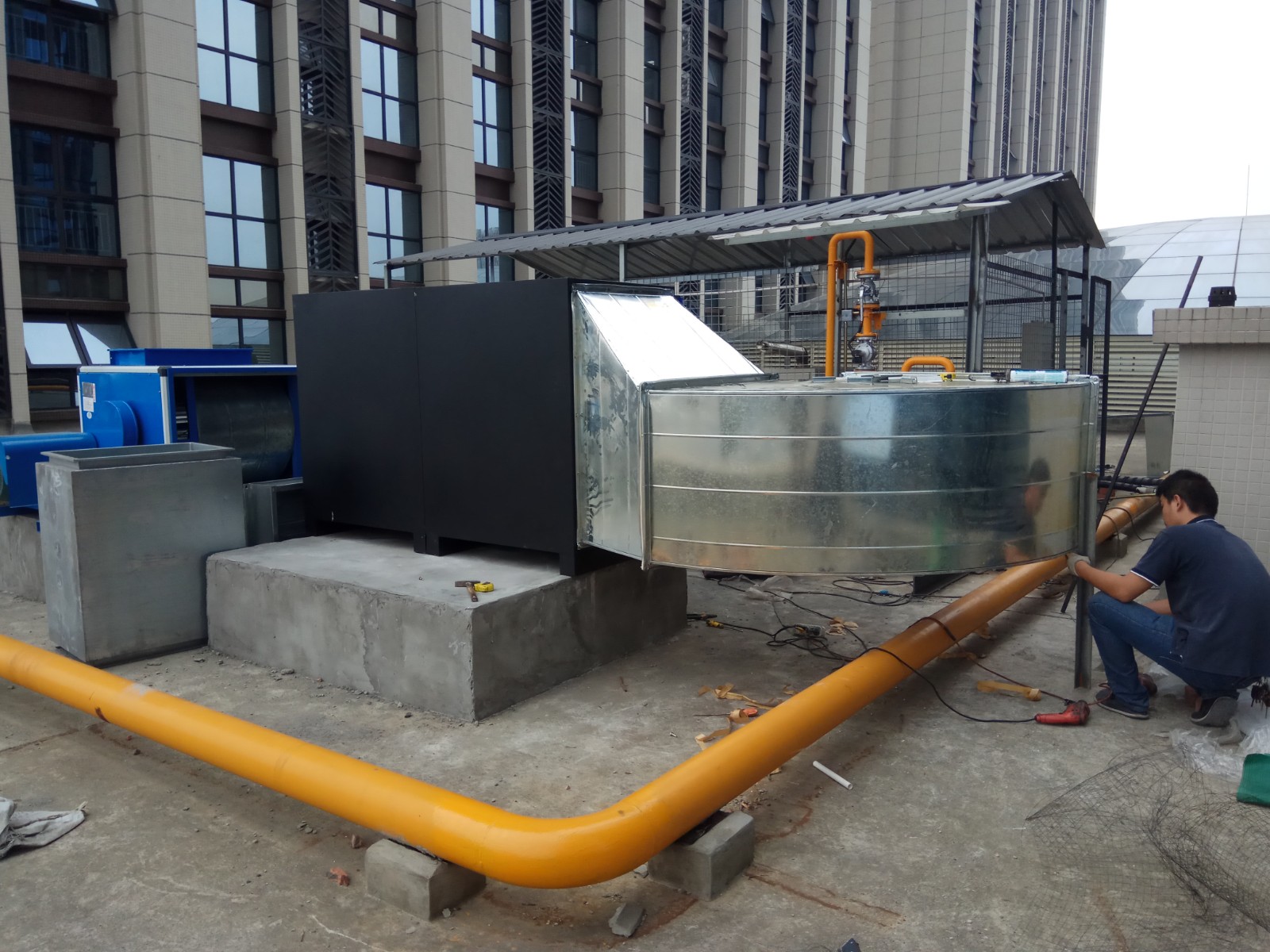 現(xiàn)場(chǎng)情況:某商場(chǎng)餐飲企業(yè)集中排放(fàng)治理(lǐ)。